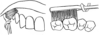 Расположите щетку на жевательной поверхности, двигайте параллельно поверхности