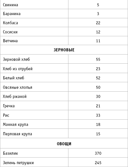 продукты (творог, твердые сыры), яйца, рыба, а также зеленые овощи, орехи. Один